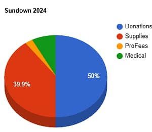 As usual, supplies and vet care are our biggest expenses. It takes a lot of money to feed, house, and care for animals properly. Not only did we provide for those in our sanctuary, but for tons of homeless victims as well as to other organizations in need so that we could help the animals in their care as well.